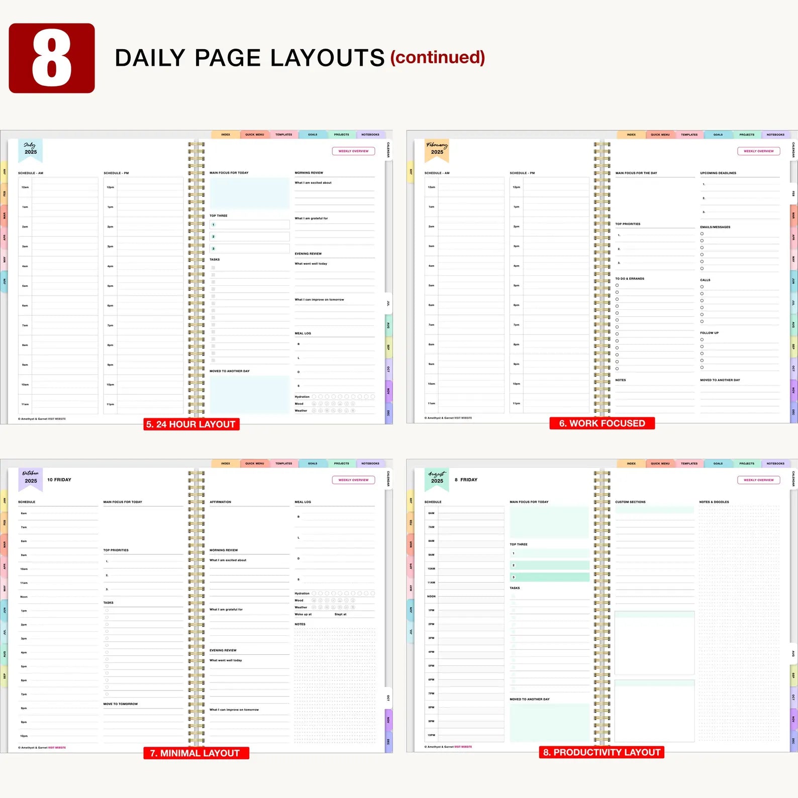 - 4 Daily Layouts: Choose from Classic, Self-Love, Journal, or the new Focus layout at download, with weekly quick links back to the week view.